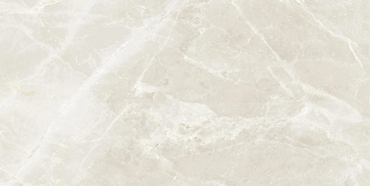 Wielkoformatowe płytki gresowe w jasnym beżu z kamiennym wzorem i wysokim połyskiem — elegancja i wszechstronność w każdym wnętrzu.