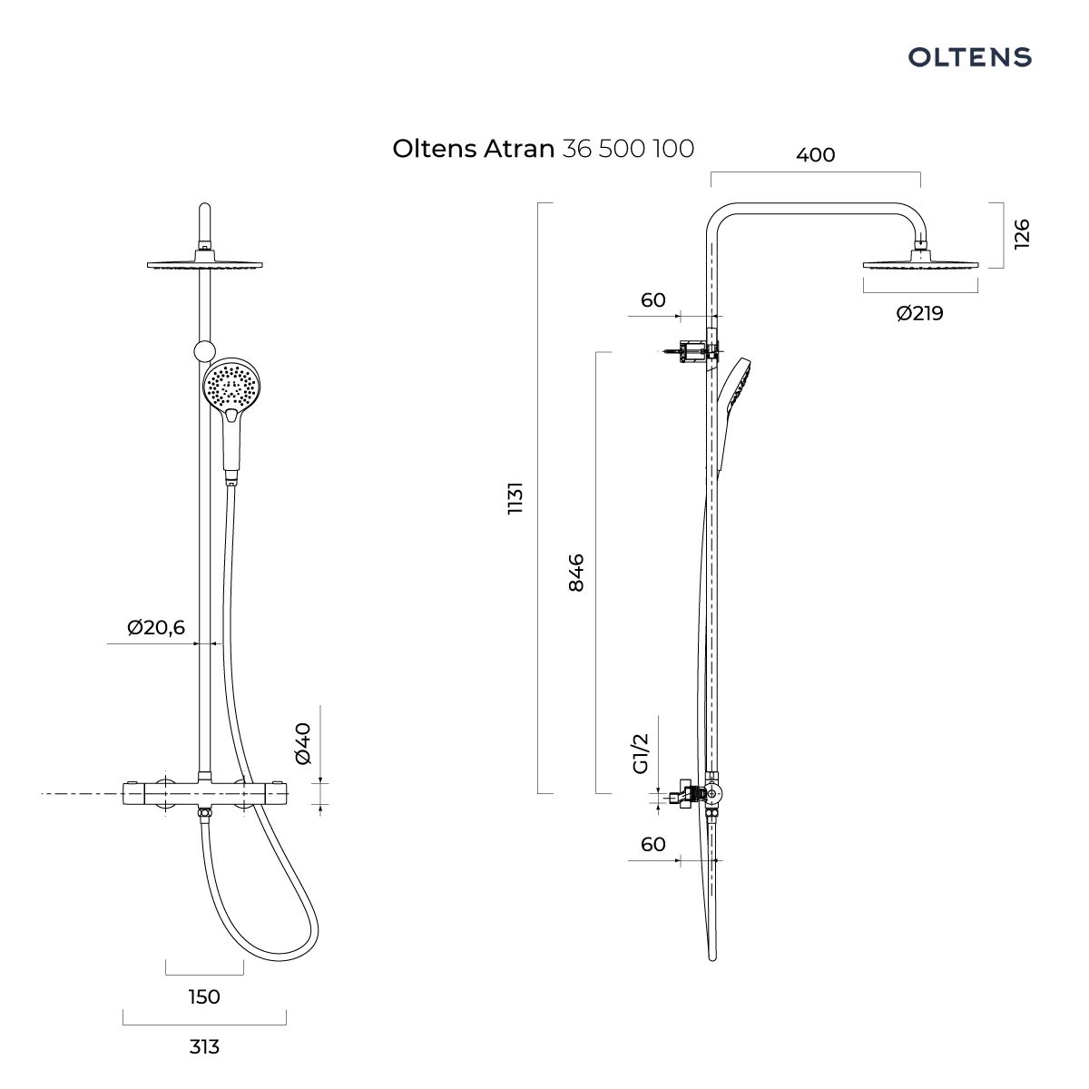 Strona główna » Sklep » Oltens Atran zestaw prysznicowy termostatyczny z deszczownicą chrom 36500100