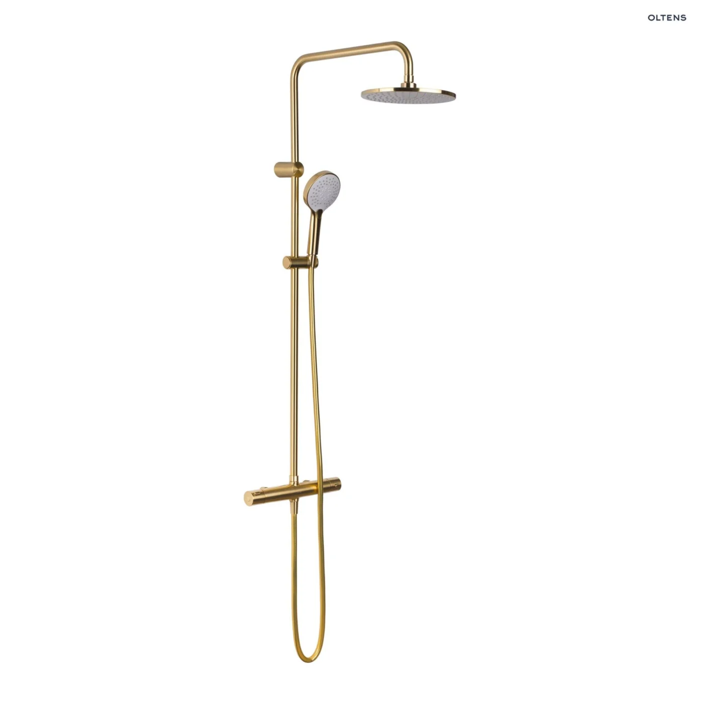 Oltens Atran zestaw prysznicowy termostatyczny z deszczownicą złoto szczotkowane 36500810