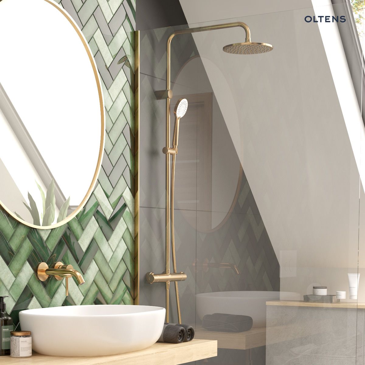 Strona główna » Sklep » Oltens Atran zestaw prysznicowy termostatyczny z deszczownicą złoty połysk 36500800
