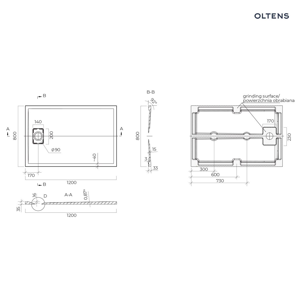 Strona główna » Sklep » Prysznice » Brodziki » Oltens Bergytan brodzik 120×80 cm prostokątny RockSurface biały 15103000