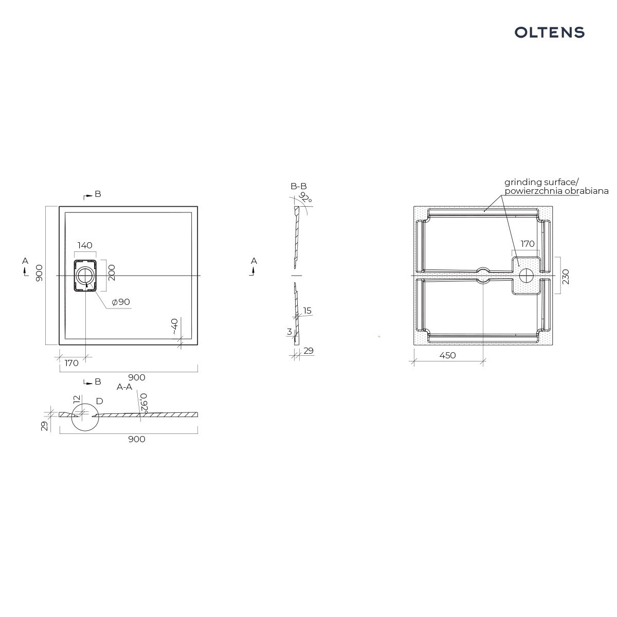 Strona główna » Sklep » Prysznice » Brodziki » Oltens Bergytan brodzik 90×90 cm kwadratowy RockSurface szary beton 17101700