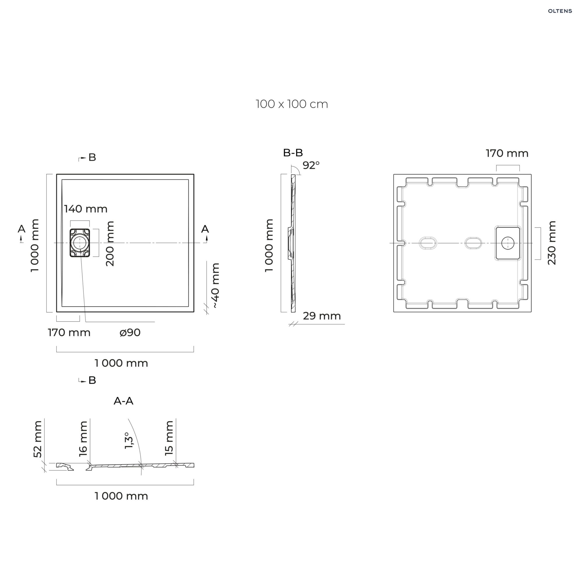 Oltens Bergytan brodzik kwadratowy 100×100 cm RockSurface kaszmir 17102900