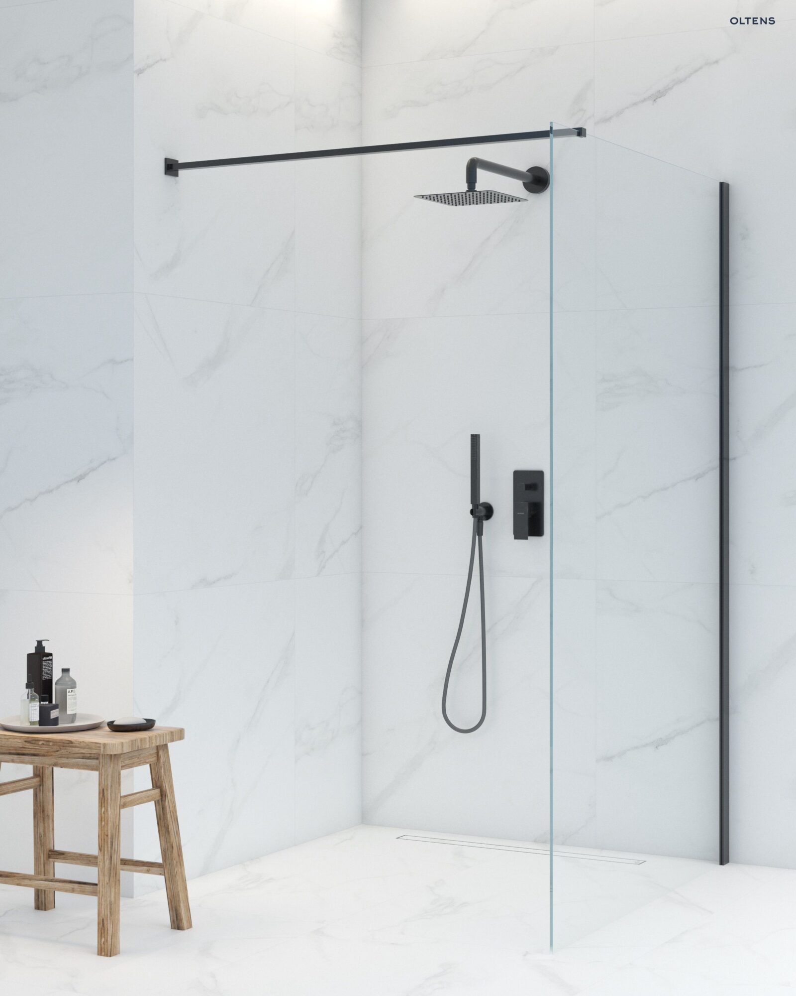 Oltens Bo Walk-In ścianka prysznicowa 90 cm czarny mat/szkło przezroczyste 22001300