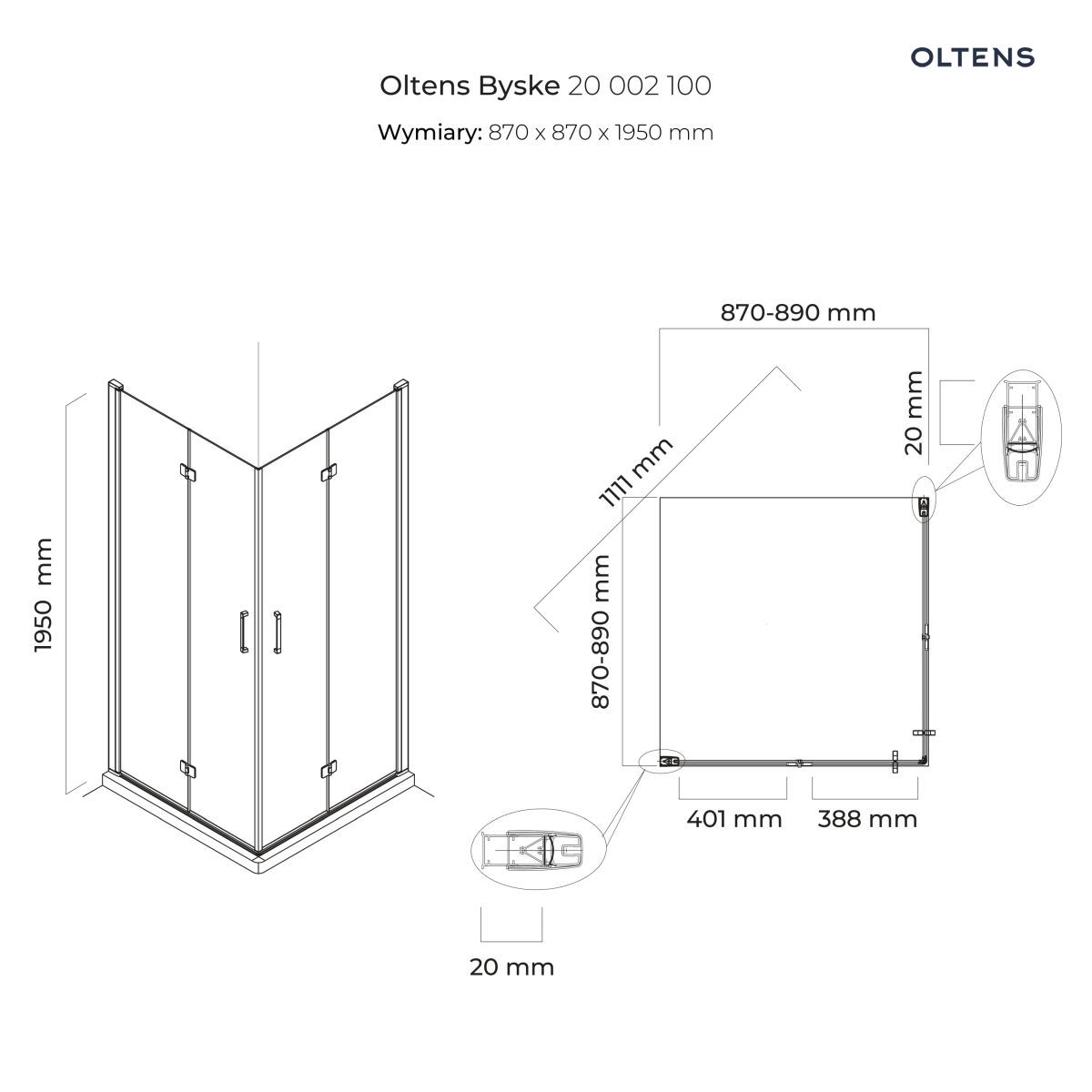 Strona główna » Sklep » Prysznice » Kabiny prysznicowe » Oltens Byske kabina prysznicowa 90×90 cm kwadratowa chrom/szkło przezroczyste 20002100