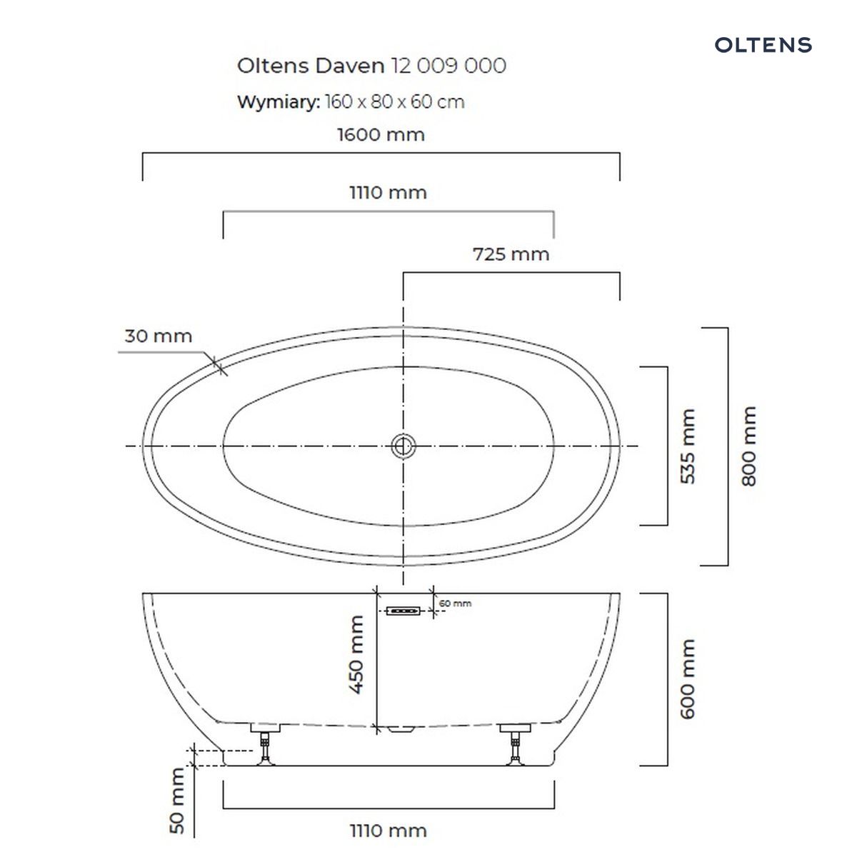 Strona główna » Sklep » Oltens Daven wanna wolnostojąca 160×80 cm owalna akrylowa biały połysk 12009000