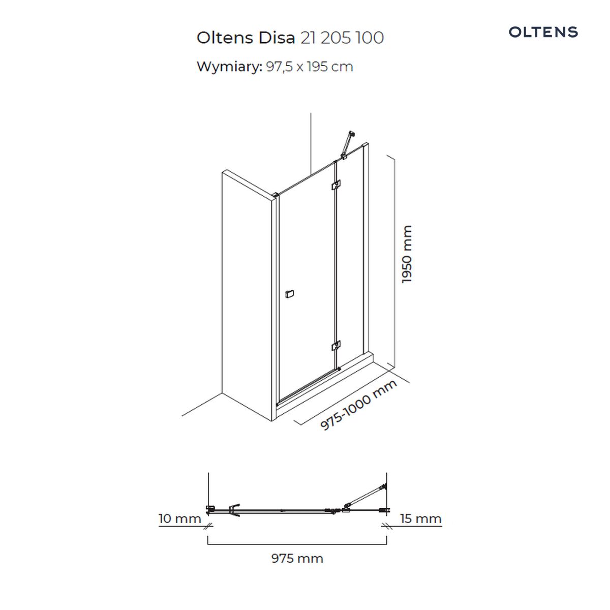 Strona główna » Sklep » Oltens Disa drzwi prysznicowe 100 cm wnękowe szkło przezroczyste 21205100