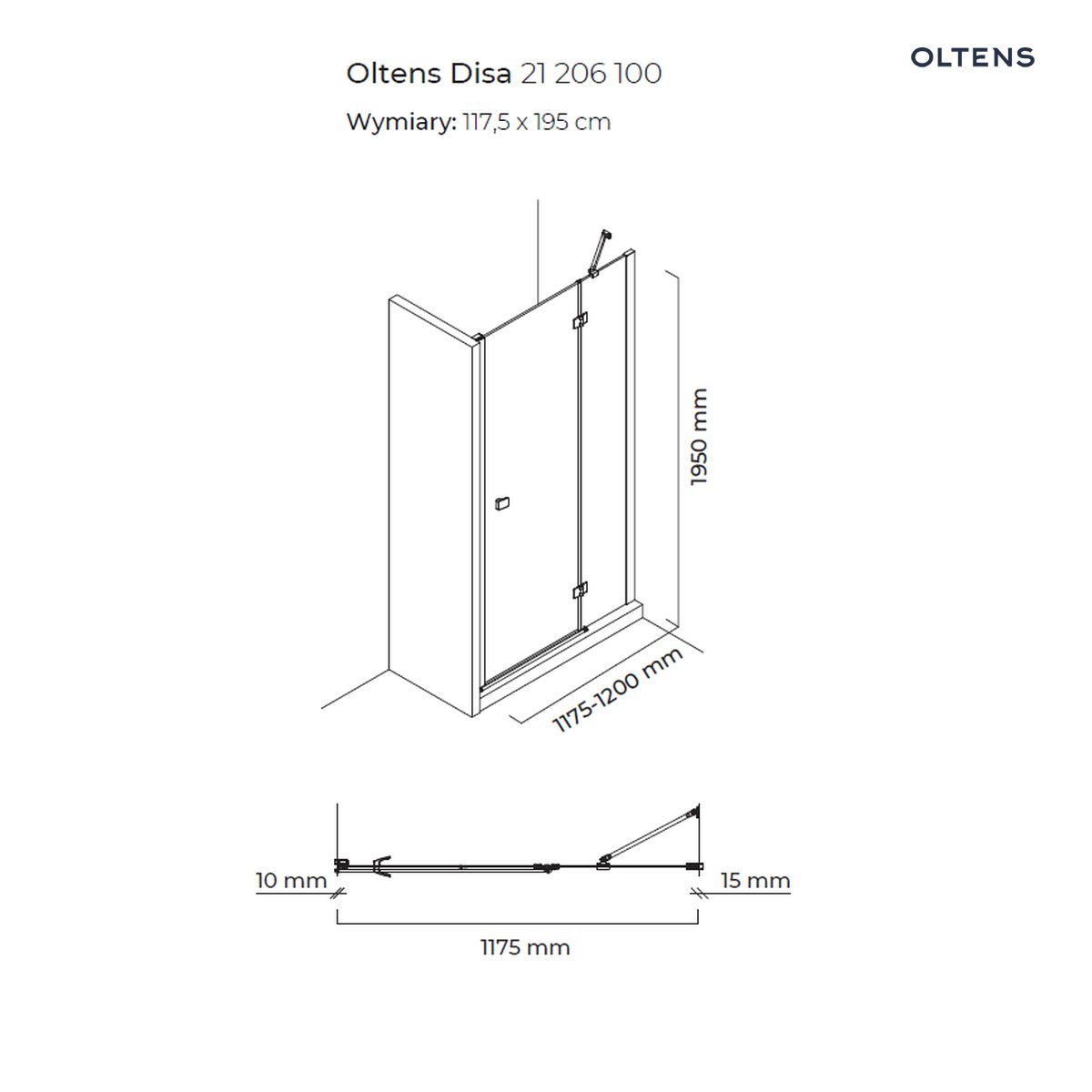 Strona główna » Sklep » Oltens Disa drzwi prysznicowe 120 cm wnękowe szkło przezroczyste 21206100