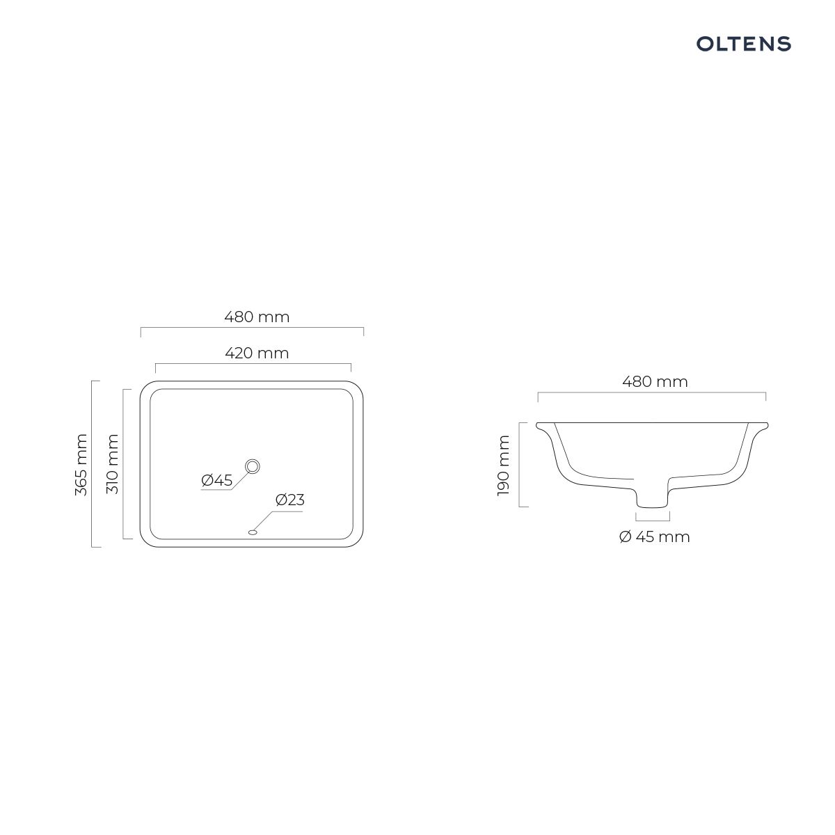 Strona główna » Sklep » Oltens Drammen umywalka 48×36,5 cm prostokątna podblatowa biała 40106000