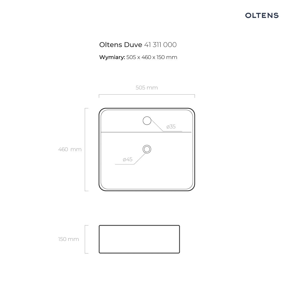 Strona główna » Sklep » Oltens Duve umywalka 50,5×46 cm nablatowa prostokątna biała 41311000