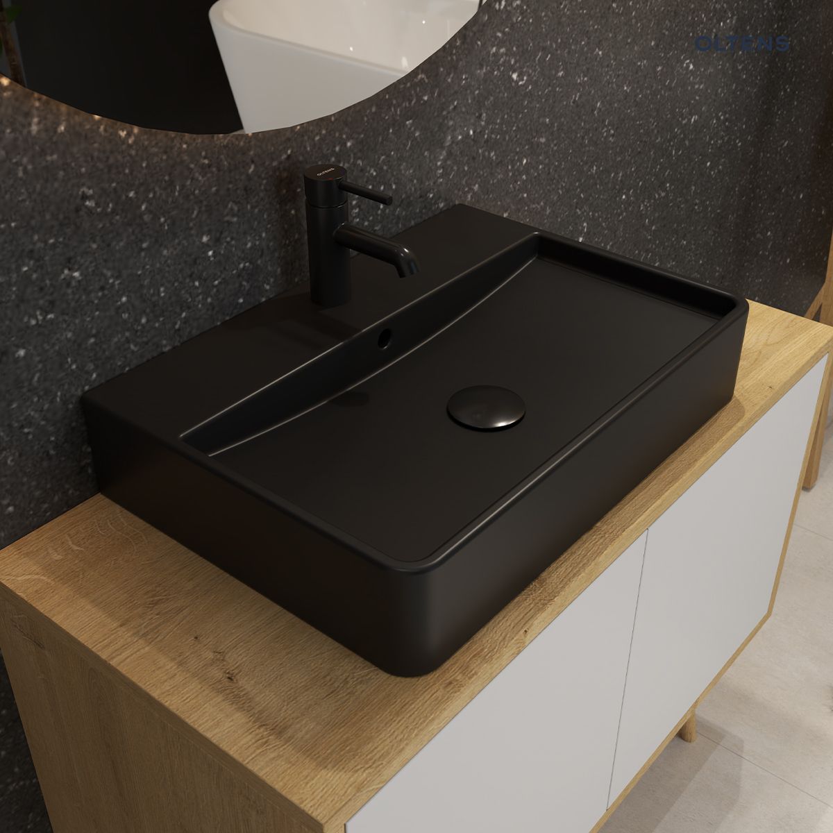 Strona główna » Sklep » Oltens Duve umywalka 59×43,5 cm nablatowa prostokątna z powłoką SmartClean czarny mat 41800300