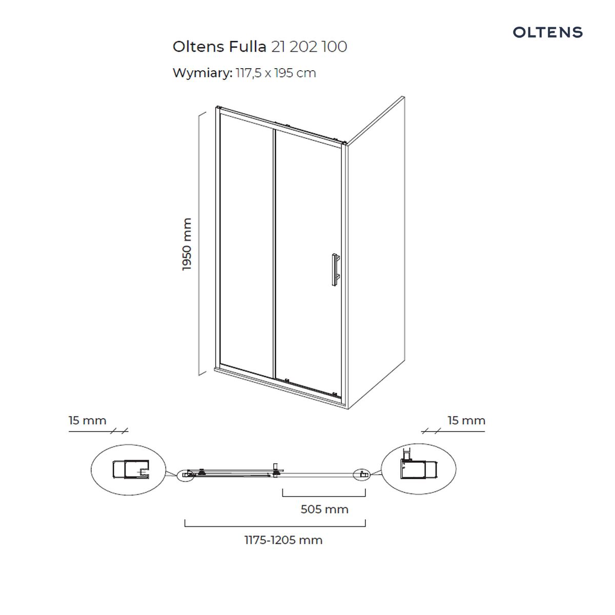 Strona główna » Sklep » Oltens Fulla drzwi prysznicowe 120 cm wnękowe chrom błyszczący/szkło przezroczyste 21202100