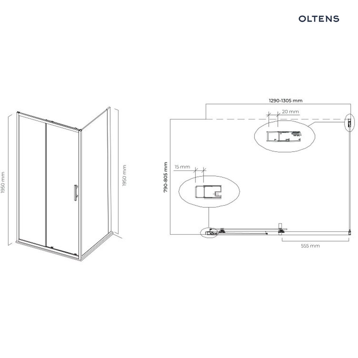 Oltens Fulla kabina prysznicowa 130×80 cm prostokątna drzwi ze ścianką chrom/szkło przezroczyste 20209100