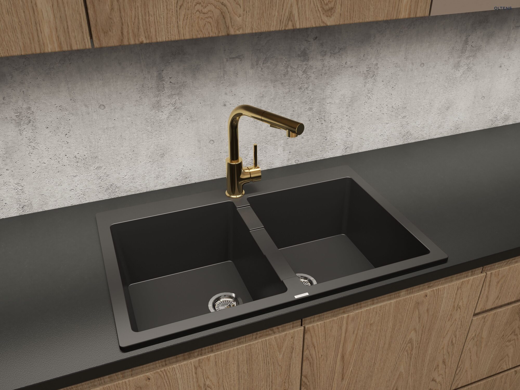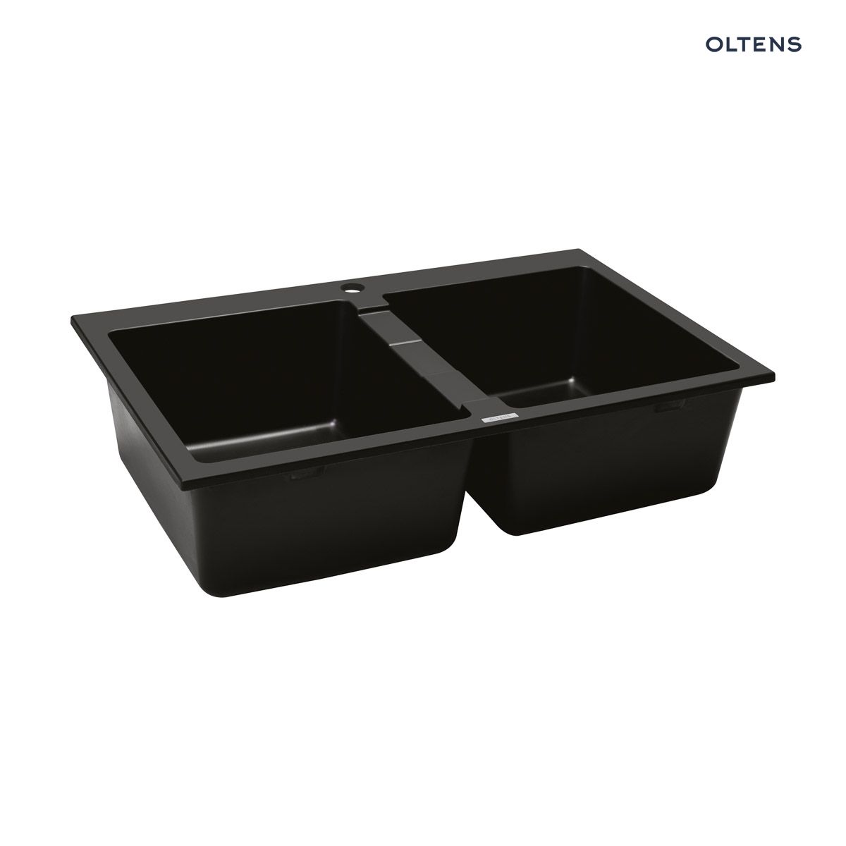 Oltens Gravan zlewozmywak granitowy 2-komorowy 78×50 cm czarny mat 72400300