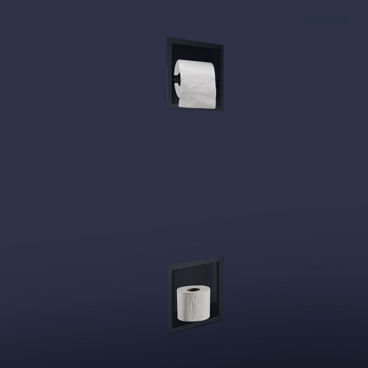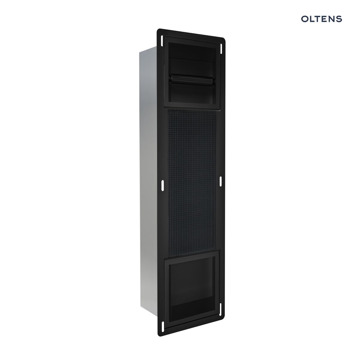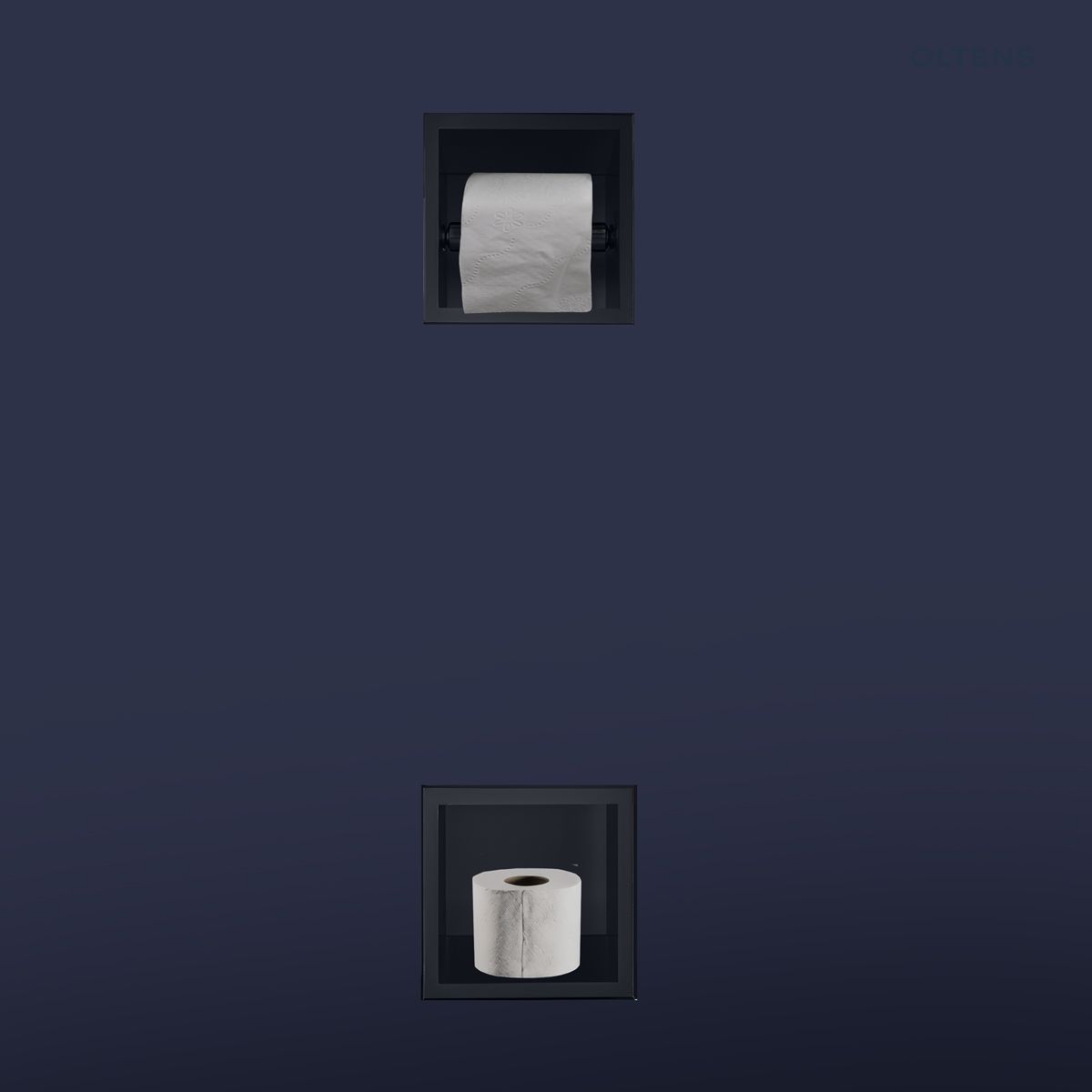 Oltens Grotta uchwyt na papier toaletowy wnękowy z półką czarny mat 81113300