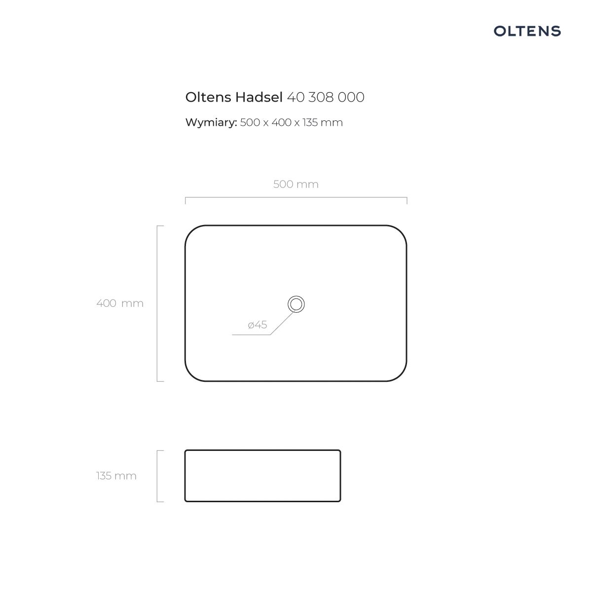 Strona główna » Sklep » Oltens Hadsel umywalka 50×40 cm nablatowa biała 40308000