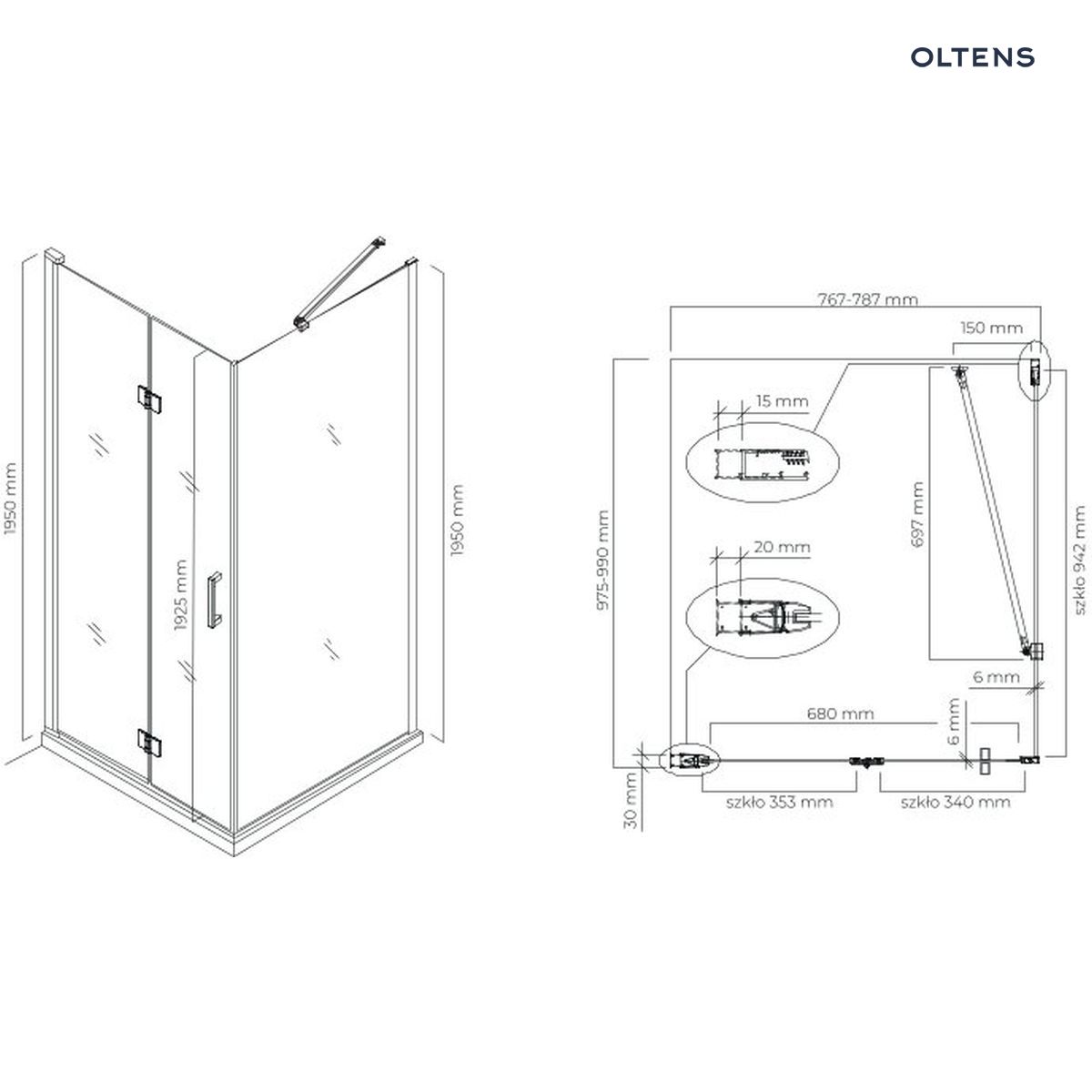Oltens Hallan kabina prysznicowa 80×100 cm prostokątna drzwi ze ścianką czarny mat/szkło przezroczyste 20201300