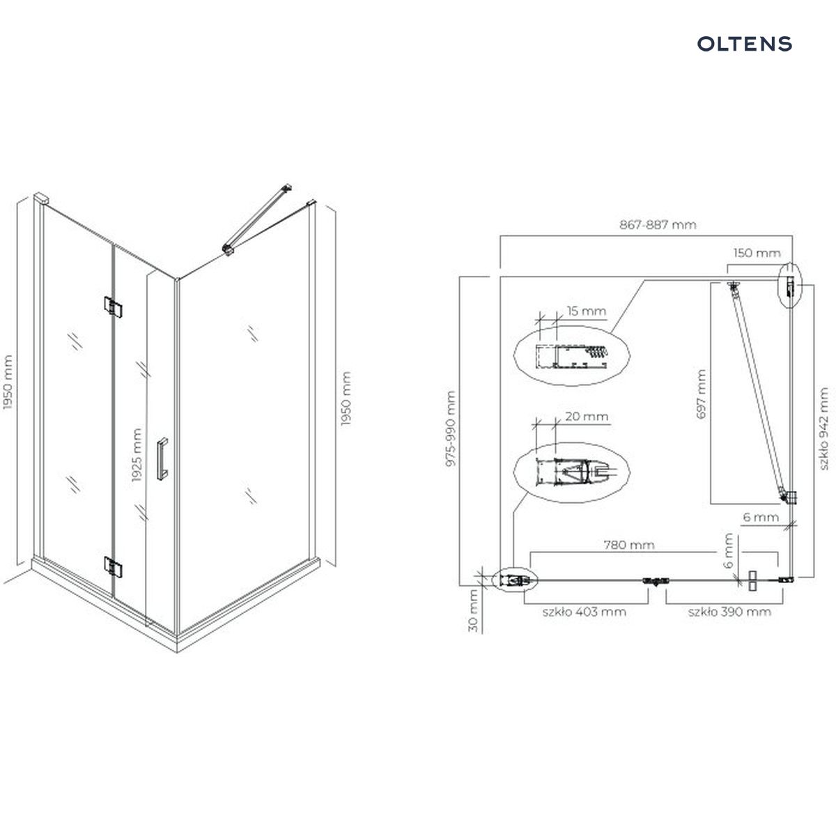 W zestawie:kabina bez brodzika