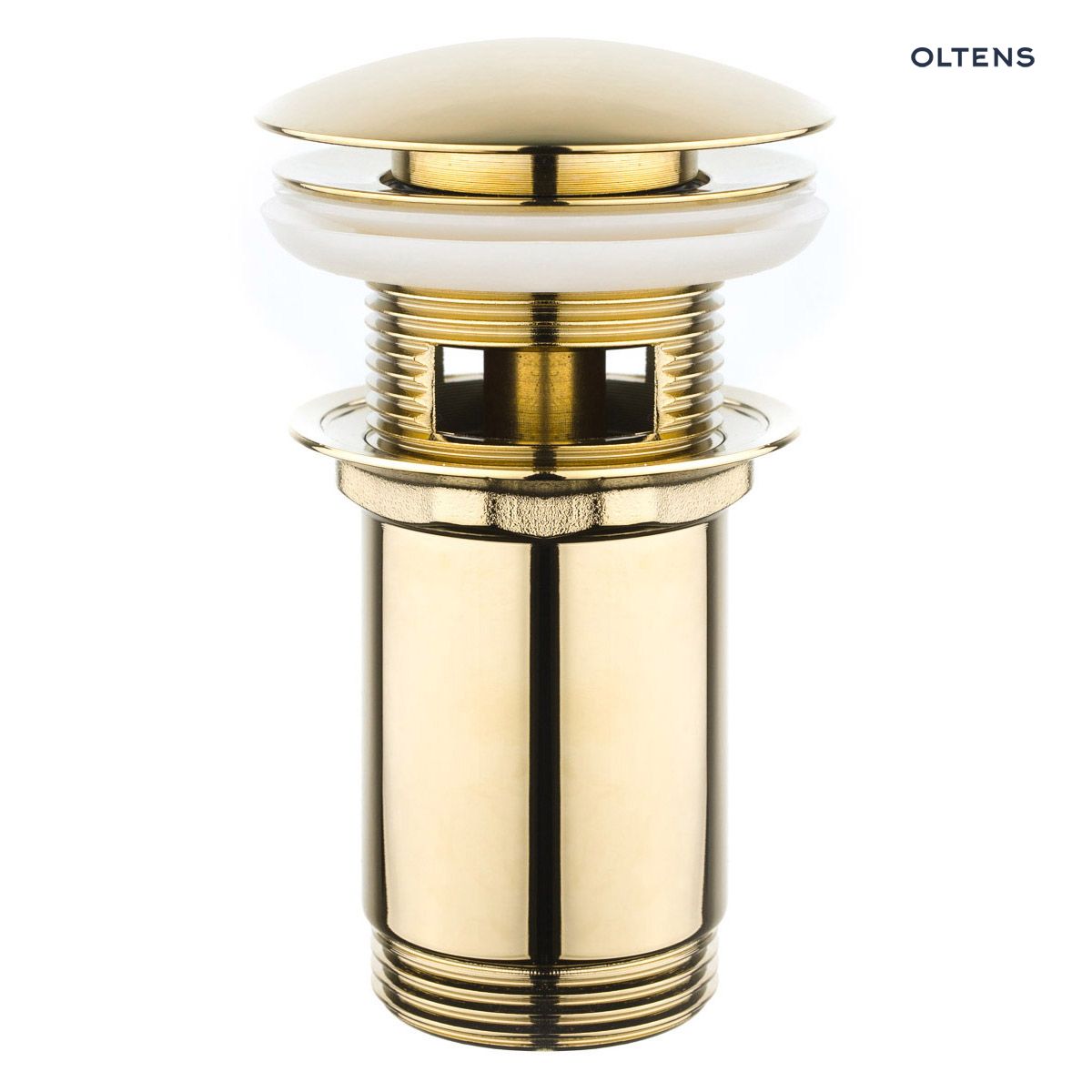 Oltens Halsa korek umywalkowy klik klak okrągły z przelewem G1 1/4 złoty połysk 05100800