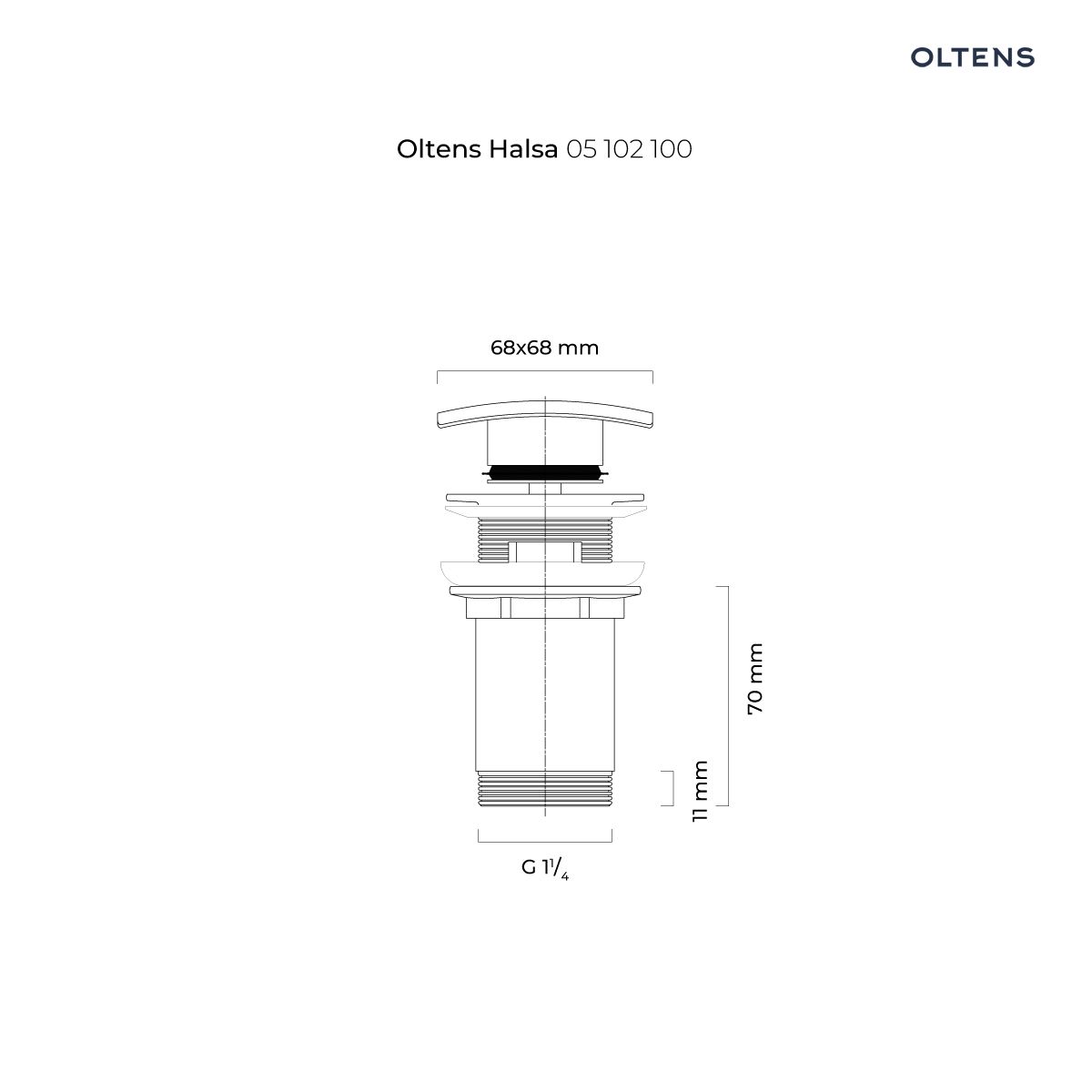 Oltens Halsa (S) korek do umywalki klik klak kwadratowy z przelewem G 1 1/4 chrom 05102100