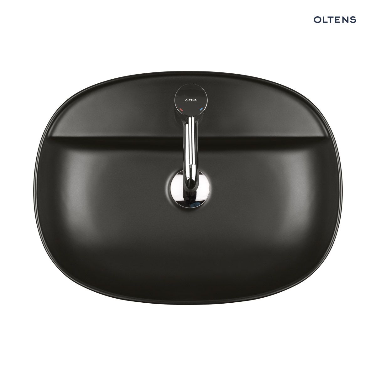 Oltens Hamnes Thin umywalka 51×39 cm nablatowa owalna z powłoką SmartClean czarny mat 41813300