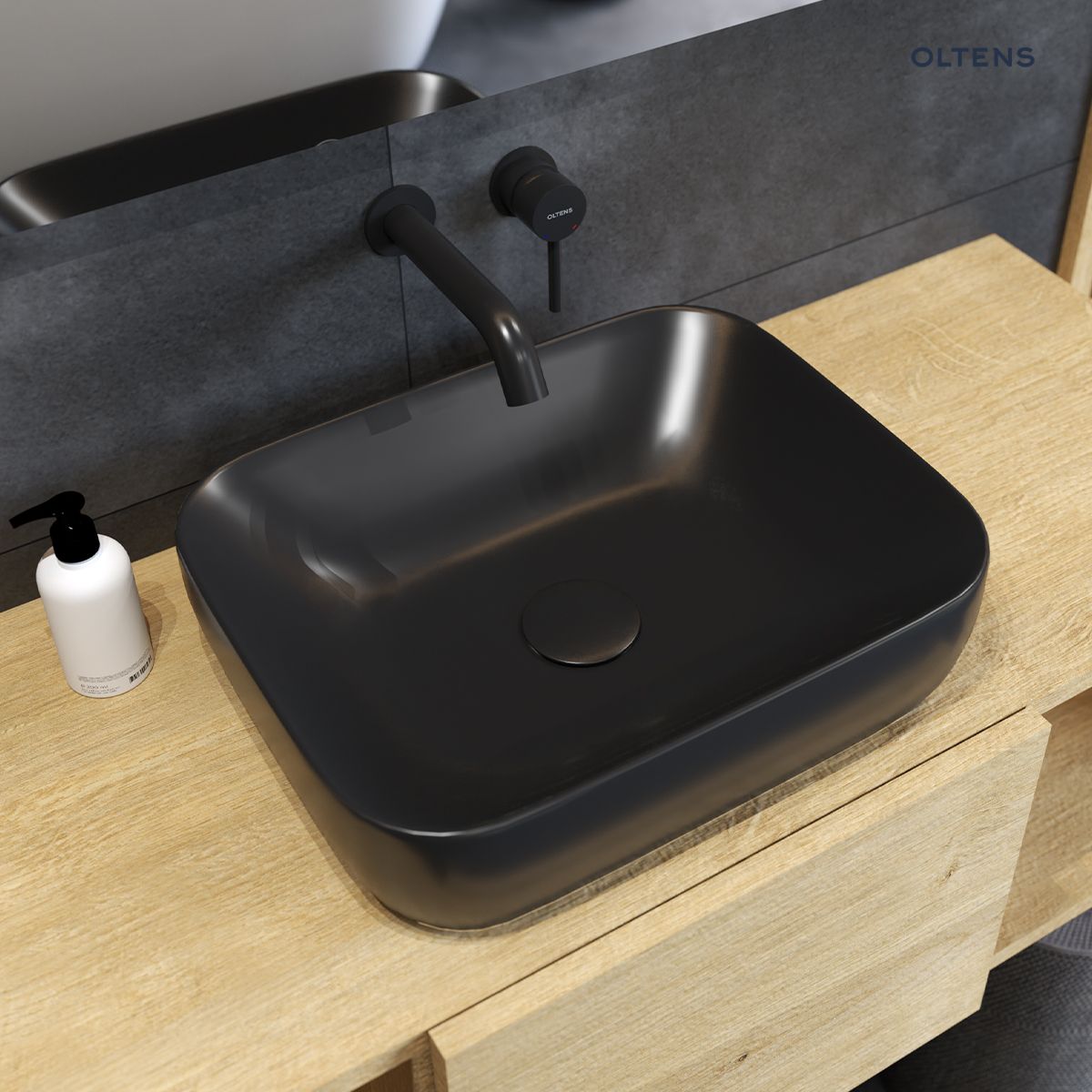 Strona główna » Sklep » Oltens Hamnes umywalka 46,5×37,5 cm nablatowa owalna czarny mat 40301300