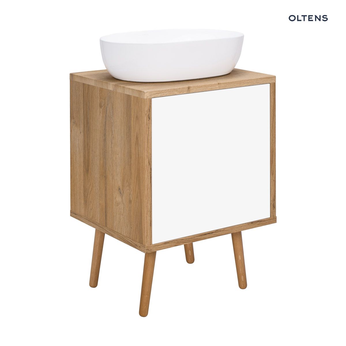 Oltens Hedvig szafka 50 cm podumywalkowa wisząca z półką biały połysk/dąb naturalny 60203060