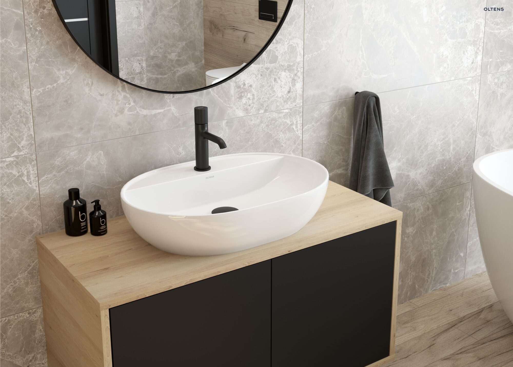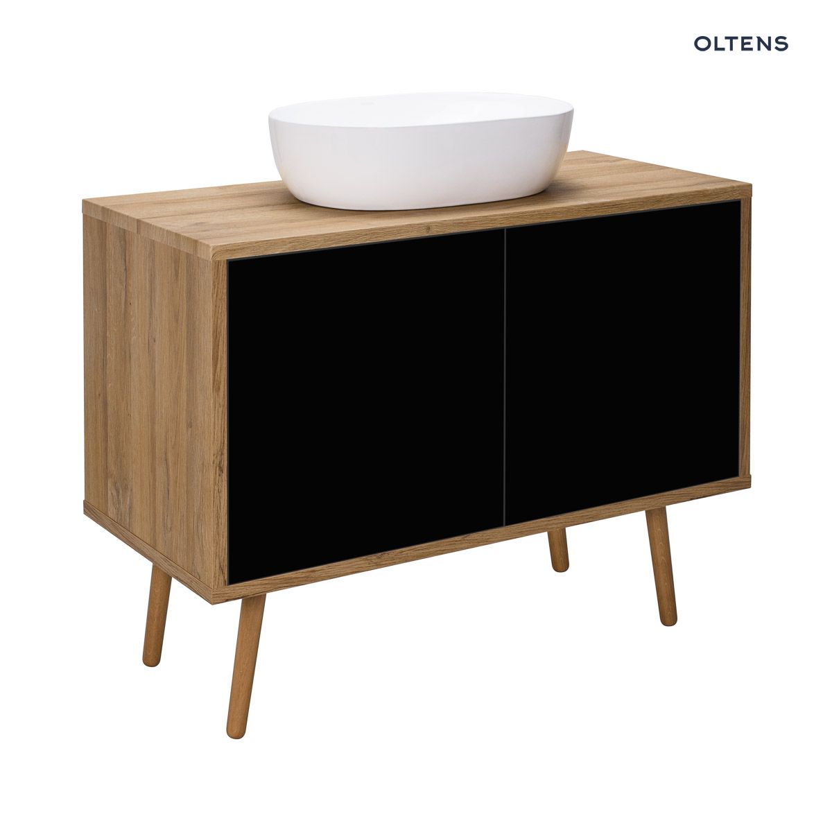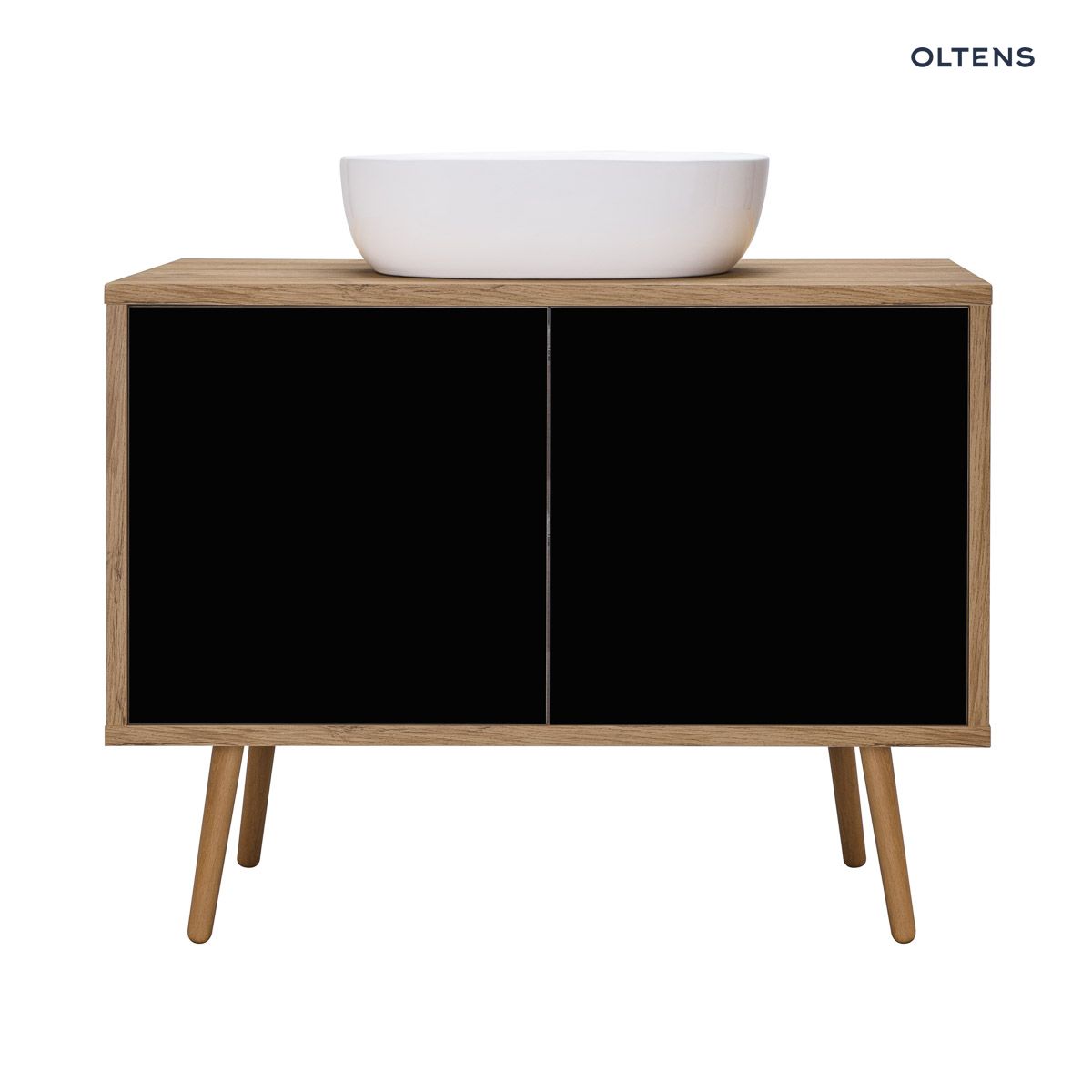 Oltens Hedvig szafka 95 cm podumywalkowa wisząca z półką czarny mat/dąb naturalny 60204360