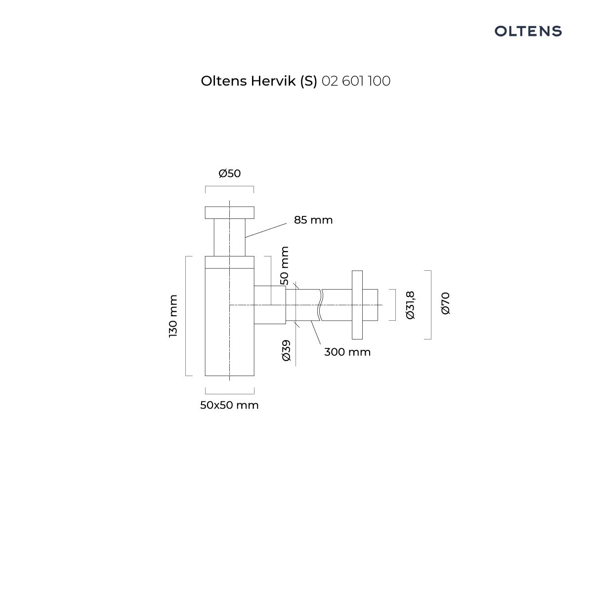 Oltens Hervik (S) syfon umywalkowy mosiężny kwadratowy chrom 02601100