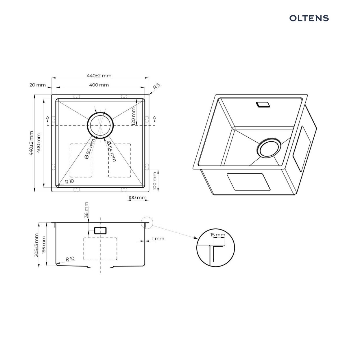Strona główna » Sklep » Oltens Hydda zlewozmywak stalowy 44×44 cm 1 komorowy czarny 71103300