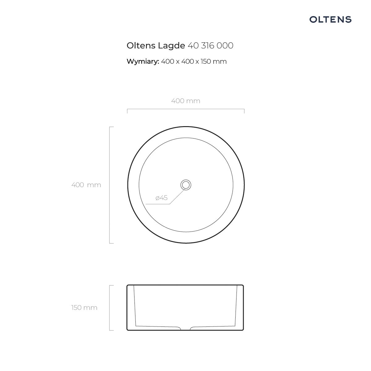 Strona główna » Sklep » Oltens Lagde umywalka 40 cm nablatowa okrągła biała 40316000