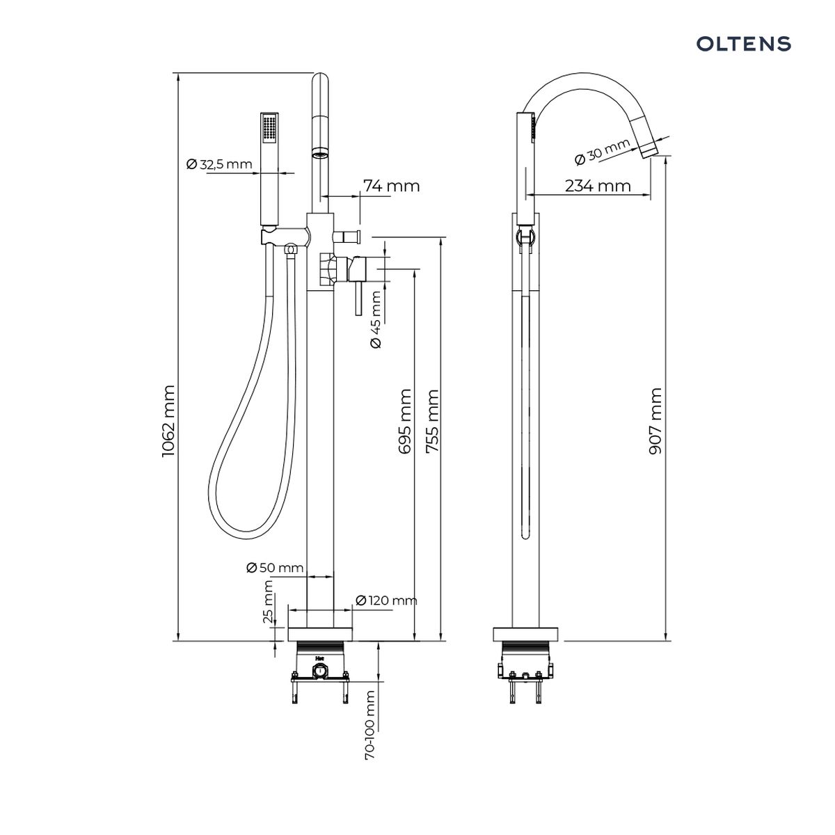 Oltens Molle bateria wannowo-prysznicowa kompletna wolnostojąca chrom 34300100