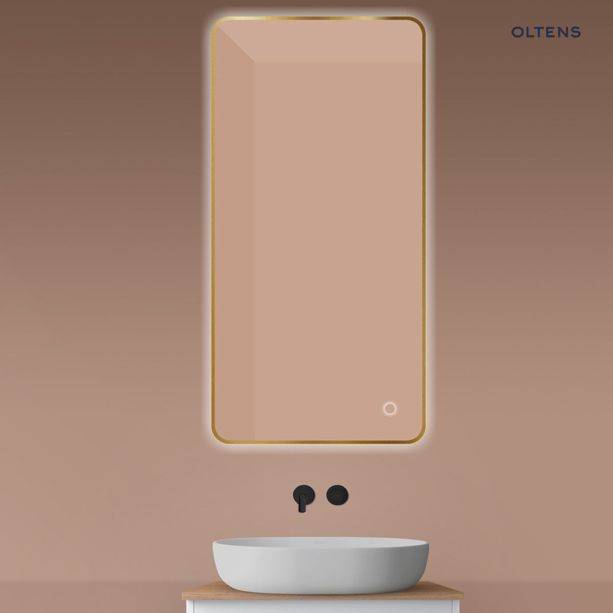 Oltens Nordlis lustro 60×120 cm prostokątne z oświetleniem od tyłu z matą grzewczą złoto szczotkowane 64121810