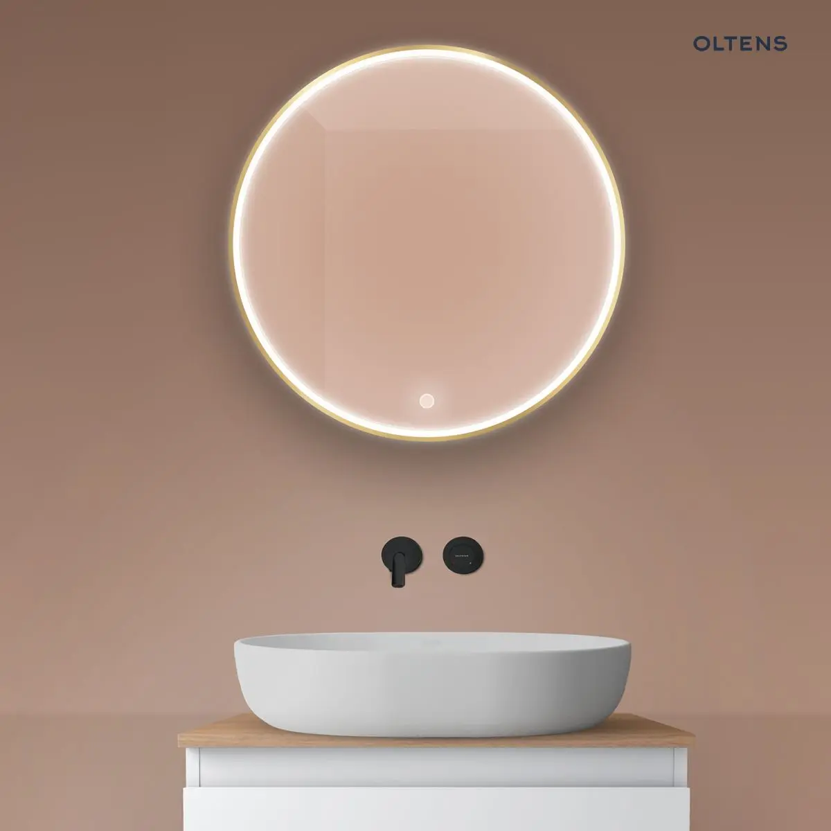 Oltens Nordlis lustro 60×60 cm okrągłe z oświetleniem z przodu z matą grzewczą złoty 64100800