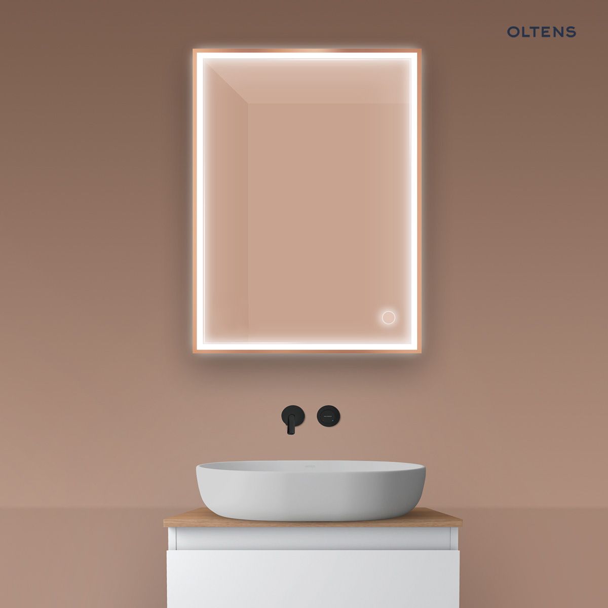 Strona główna » Sklep » Oltens Nordlis lustro 60×80 cm prostokątne z oświetleniem z przodu z matą grzewczą miedź szczotkowana 64105610