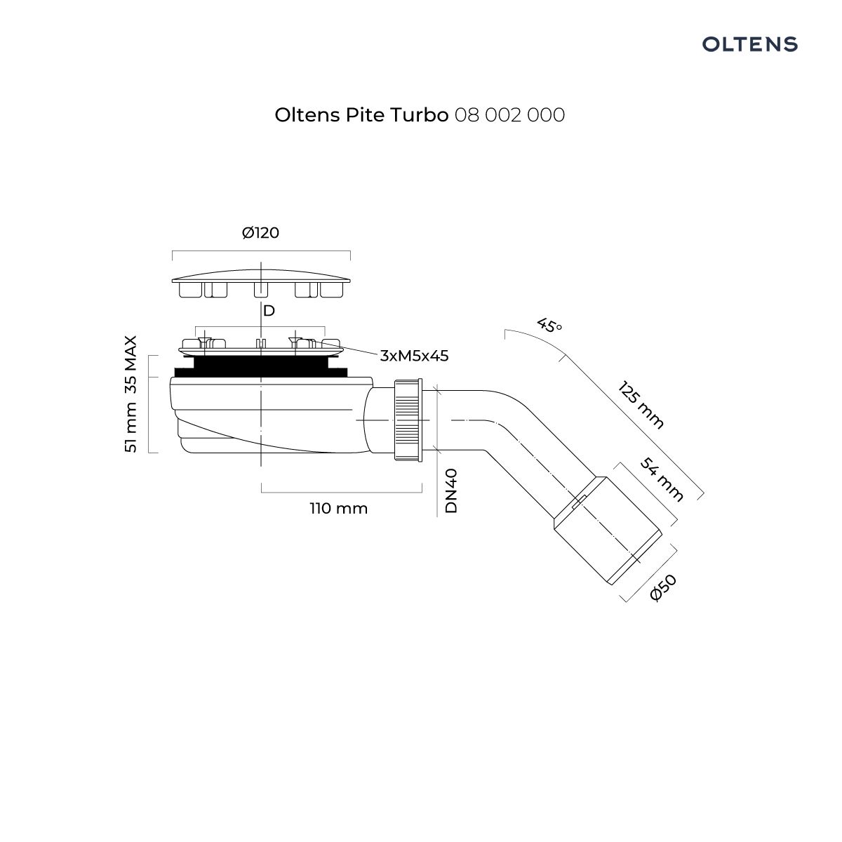 Oltens Pite Turbo Slim syfon do brodzika 90 mm plastikowy niski chrom 08002000