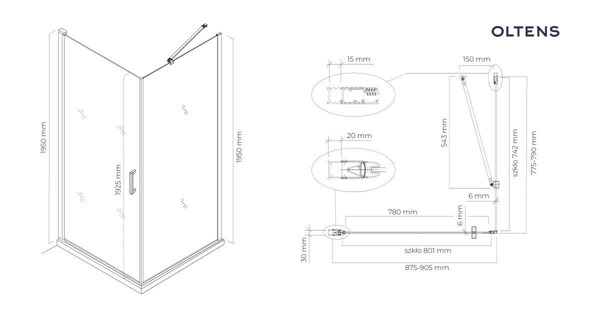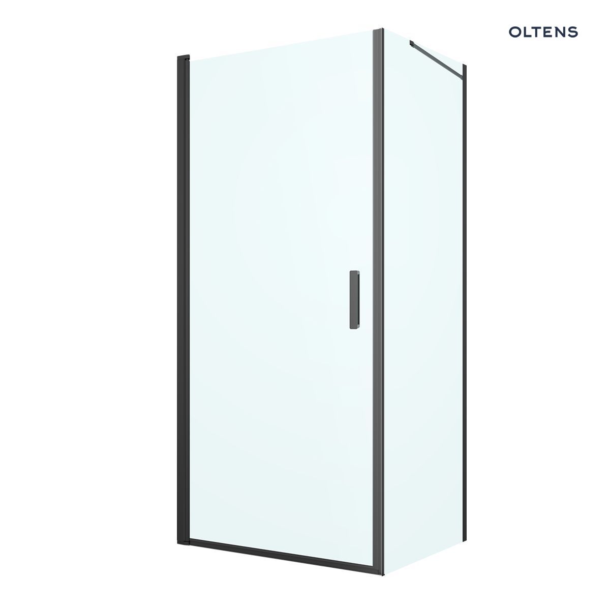 Oltens Rinnan kabina prysznicowa 90×80 cm prostokątna drzwi ze ścianką czarny mat/szkło przezroczyste 20216300