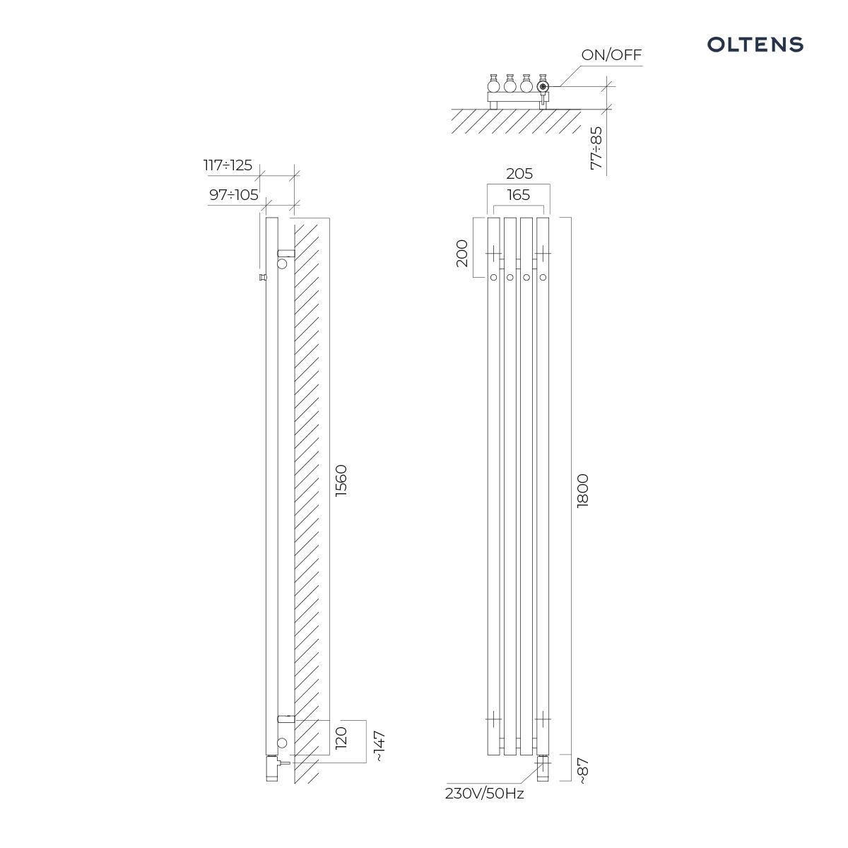 Oltens Stang (e) grzejnik elektryczny 180×20,5 cm miedź szczotkowana 55112610