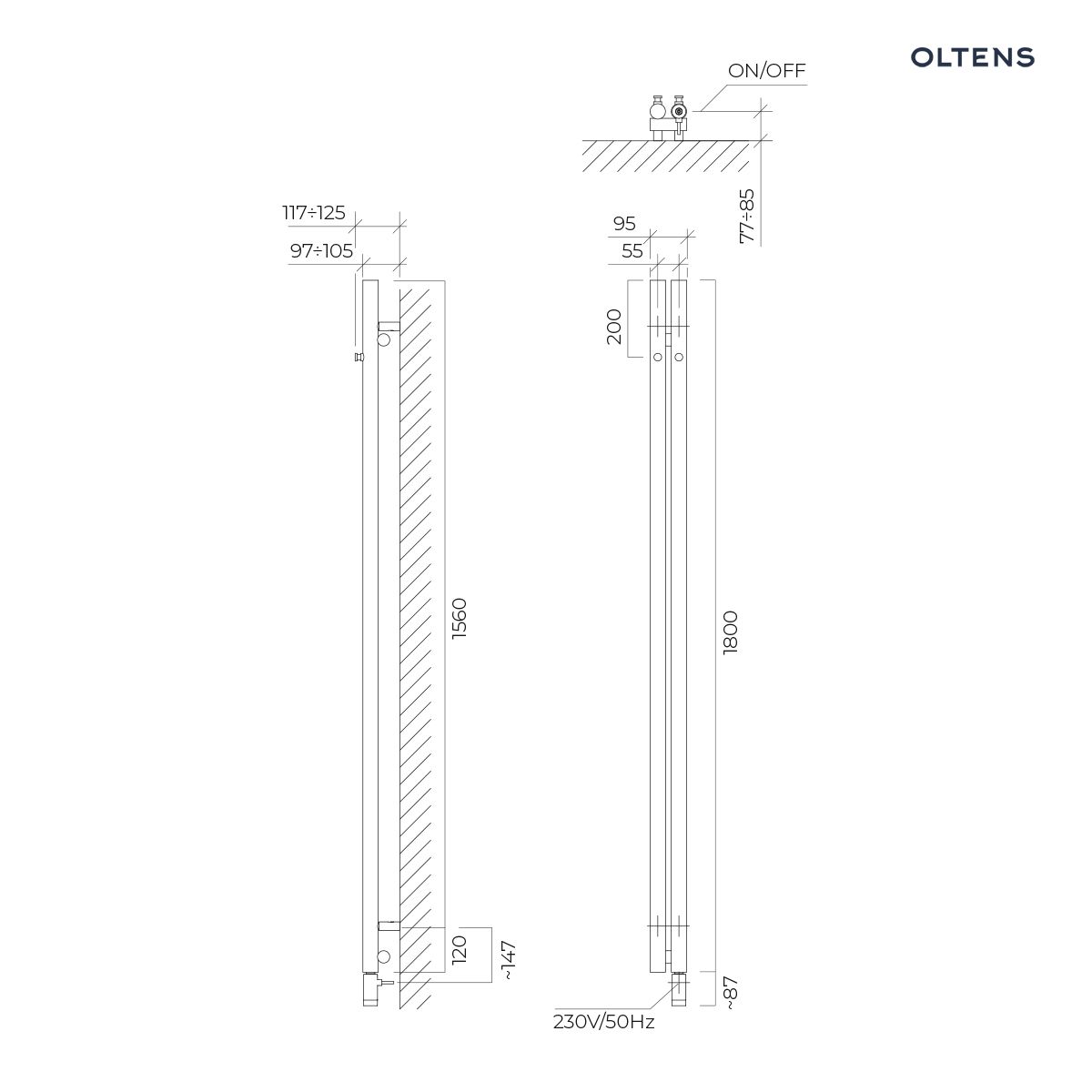 Oltens Stang (e) grzejnik elektryczny 180×9,5 cm miedź szczotkowana 55110610