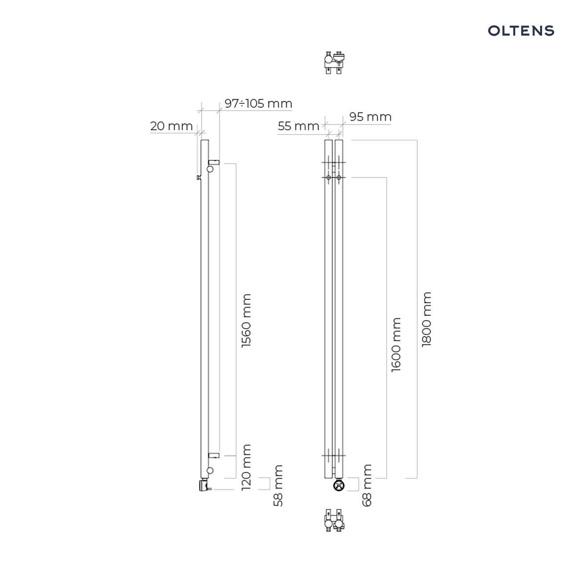 Oltens Stang (e) grzejnik łazienkowy 180×9,5cm elektryczny grafit 55110400