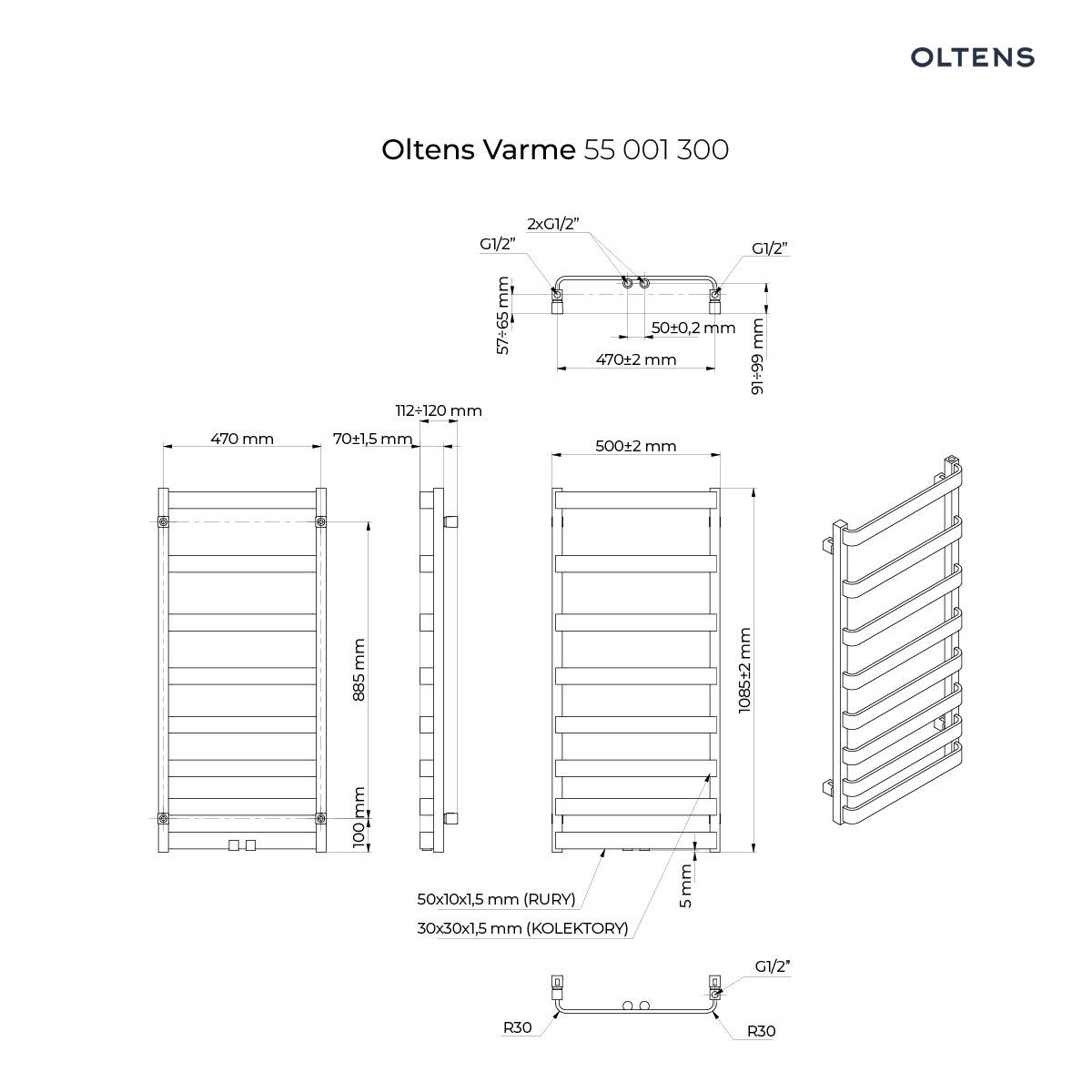 Oltens Varme grzejnik łazienkowy 108,5×50 cm czarny mat 55001300