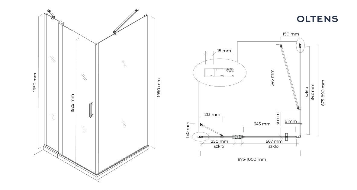 Oltens Verdal kabina prysznicowa 100×90 cm prostokątna drzwi ze ścianką czarny mat/szkło przezroczyste 20211300