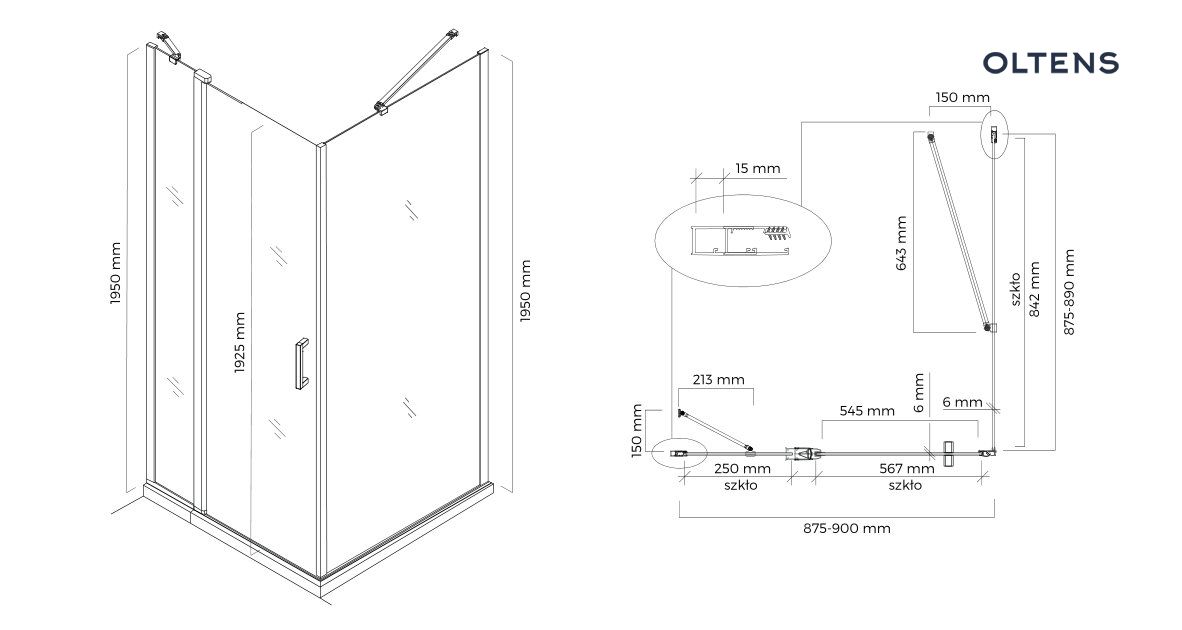 Oltens Verdal kabina prysznicowa 90×90 cm kwadratowa drzwi ze ścianką czarny mat/szkło przezroczyste 20011300