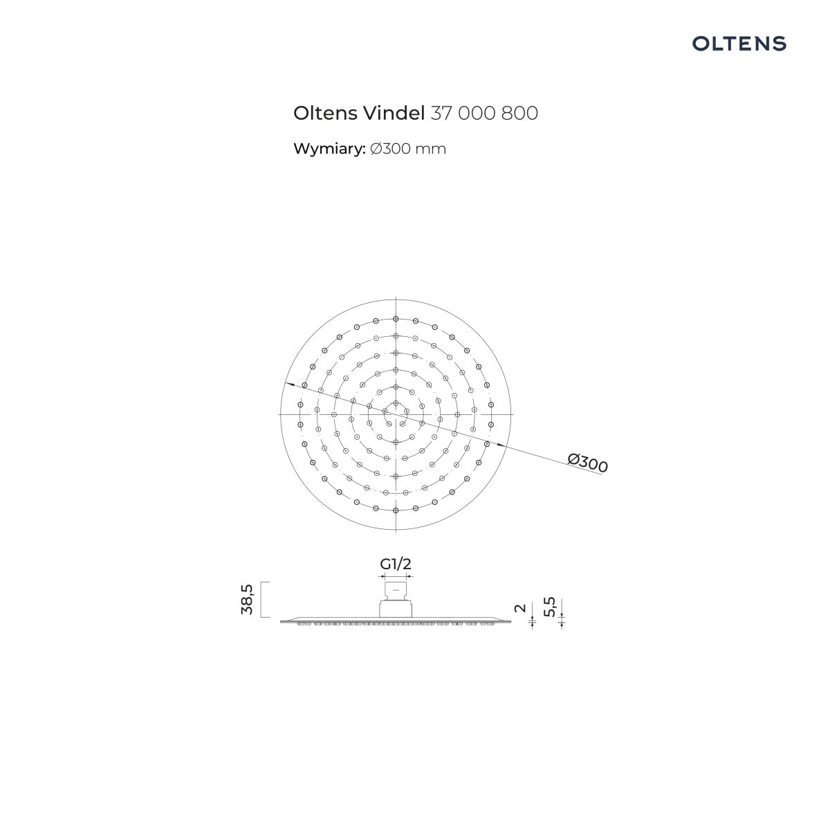 Strona główna » Sklep » Oltens Vindel deszczownica 30 cm okrągła złoty połysk 37000800