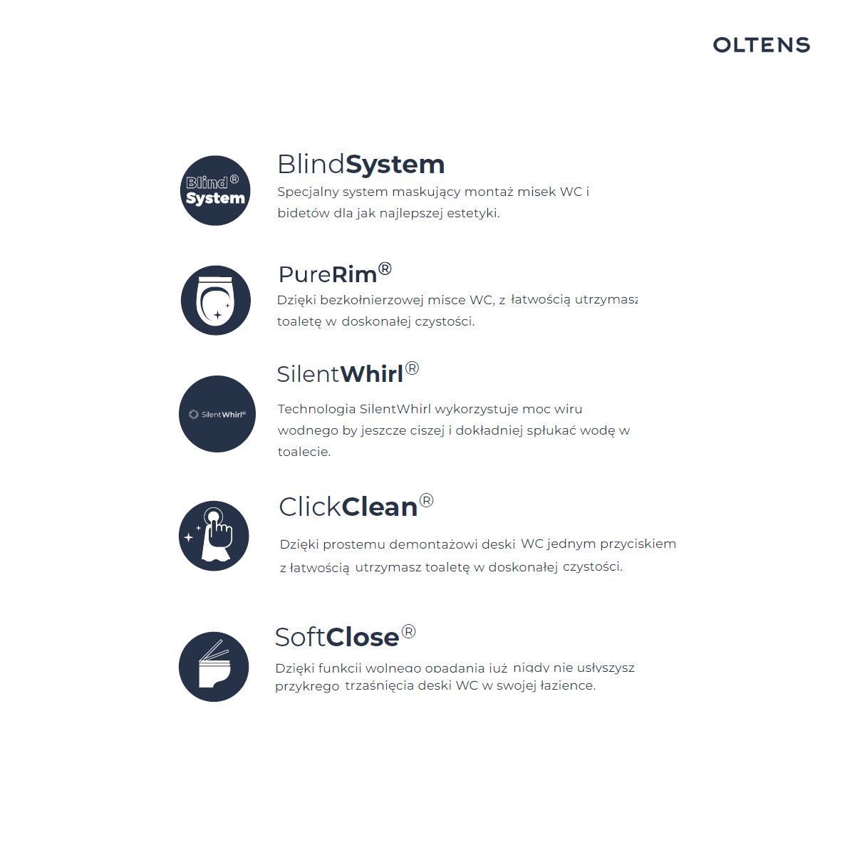 Zestaw Oltens Hamnes Stille miska WC wisząca PureRim z deską wolnoopadającą biały 42023000