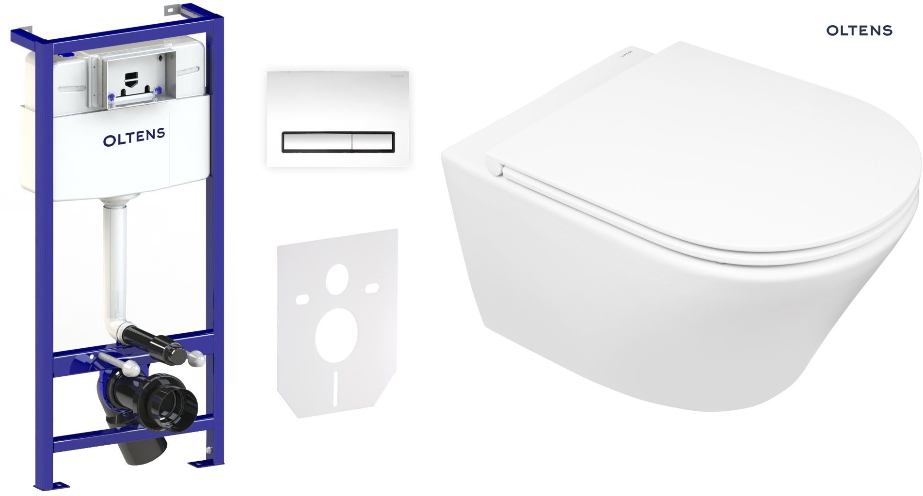 Zestaw Oltens Triberg Jog Torne 7w1 stelaż podtynkowy miska z deską 42005000 i przycisk spłukujący chrom błyszczący 58305100