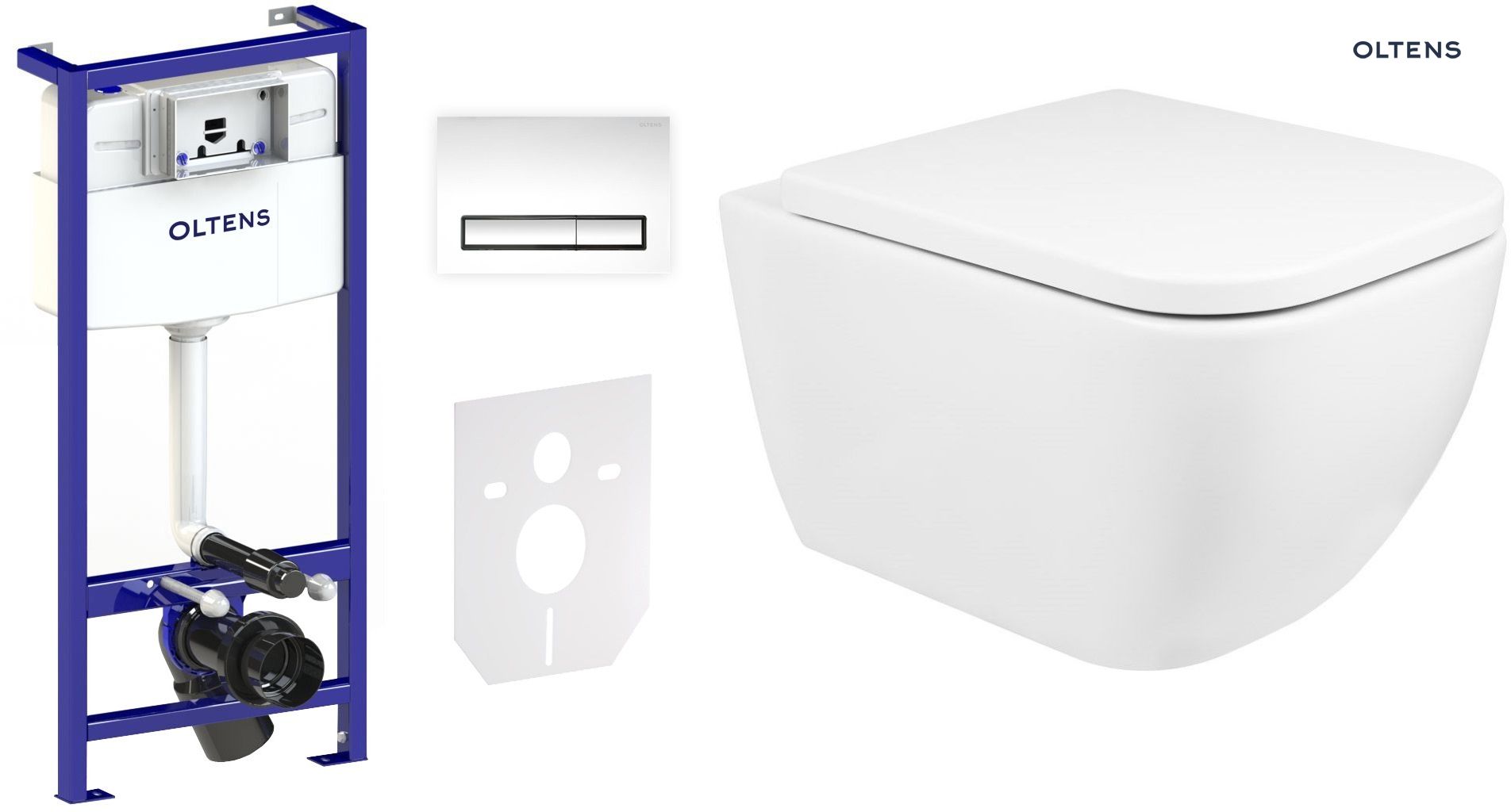 Zestaw Oltens Triberg Vernal Torne 7w1 stelaż podtynkowy miska z deską 42507000 i przycisk spłukujący chrom błyszczący 58306100
